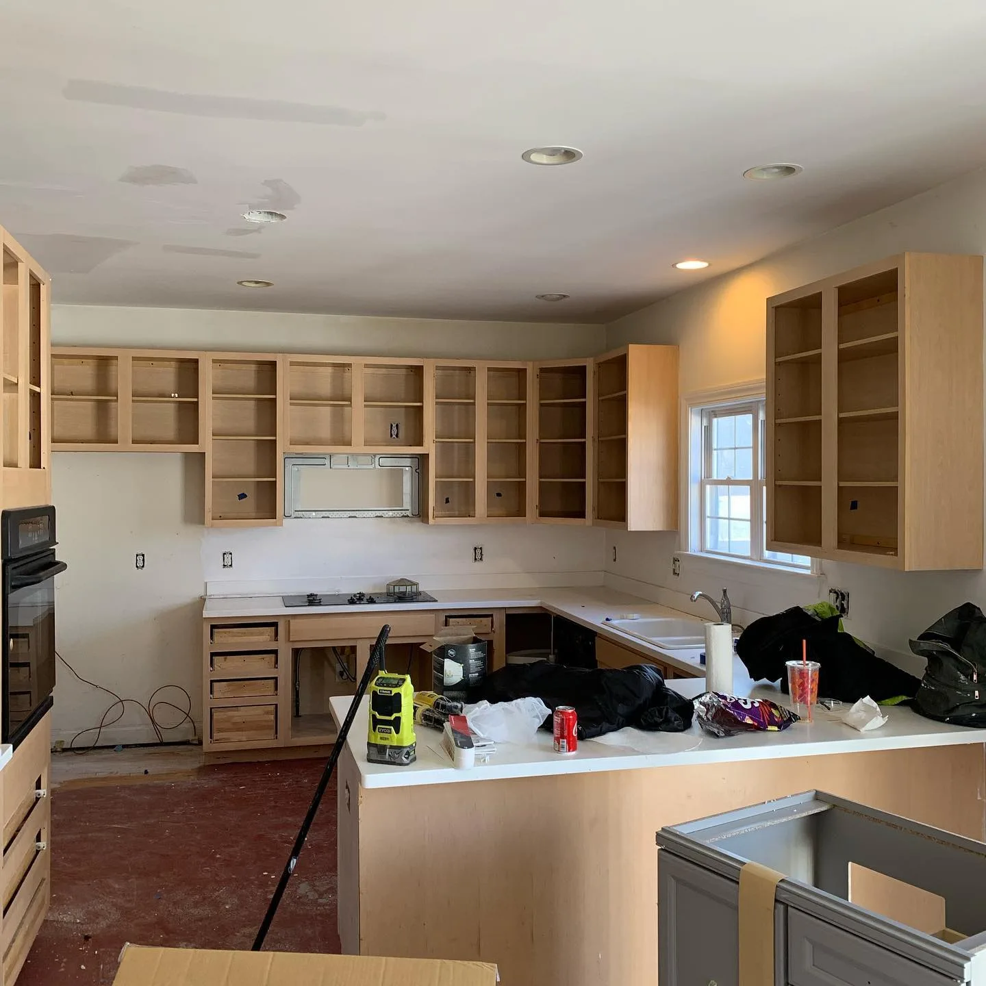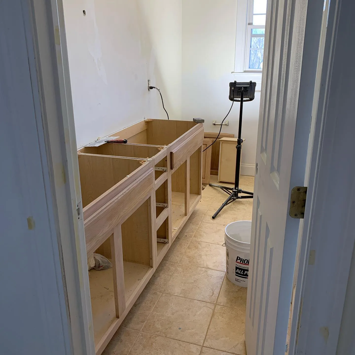 This project showcases a complete interior home renovation, progressing from initial structural preparation to detailed finishing work. The scope featured expert custom carpentry, including the installation of bespoke kitchen cabinetry and a handcrafted bathroom vanity tailored to the space.